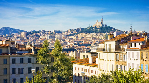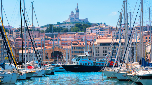 法國南部第一大港馬賽,一個典型的港口城市,充斥著各種文化的混血。山頂上新拜占庭式聖母院可眺望漂亮的海港及藍的地中海景、大教堂、舊港…。 從馬賽的近郊到小城卡西斯近20公里的一段天然岩石峽灣群。一路是典型的法國南部普羅旺斯岩石山形,蒼白乾燥的巨岩和低矮近乎被陽光烤乾的灌木,它們襯托著遠處隱約可見的藍色地中海。