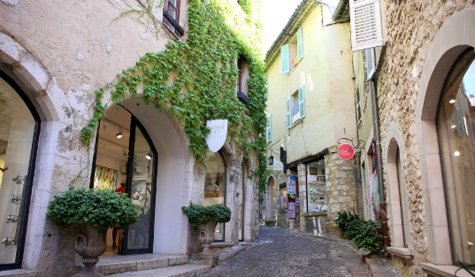 蜿蜒的石板小巷間隱藏著畫廊、雕塑與精品藝廊,曾吸引夏卡爾、畢卡索等藝術大師駐足創作,整座城就像一座露天美術館